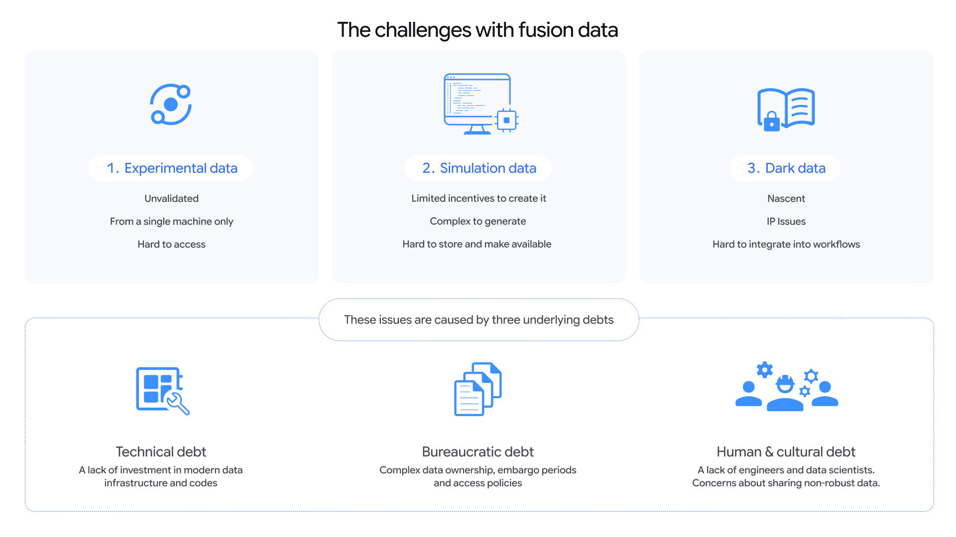 Many of these challenges with fusion data result from three underlying issues, which have compounded over time into systemic debts that inhibit the use of AI today.