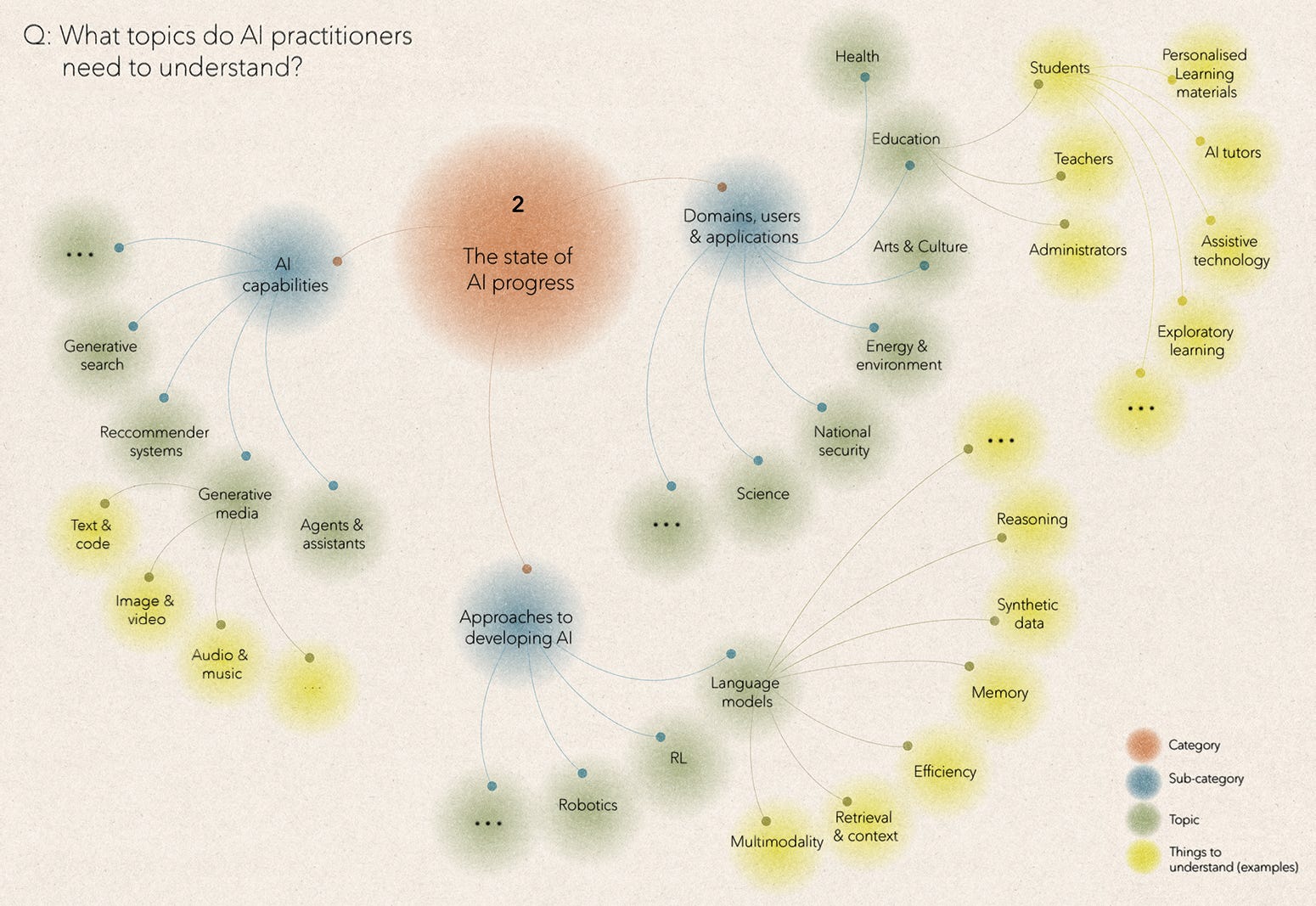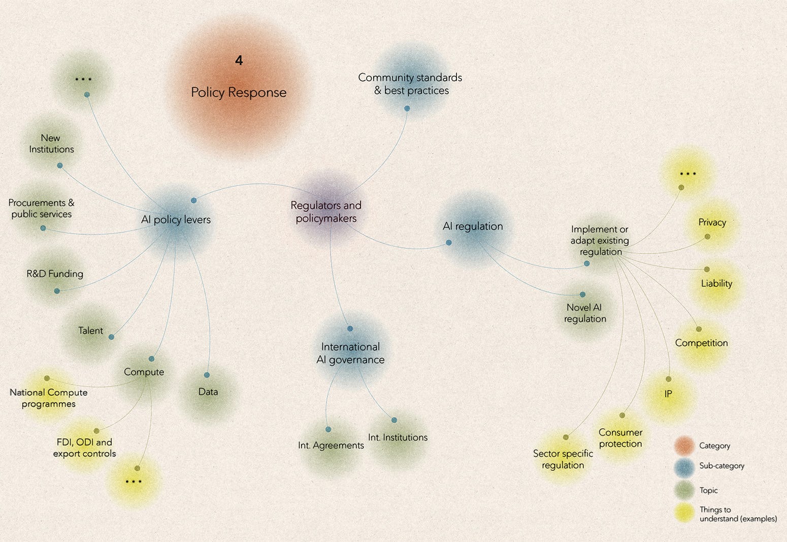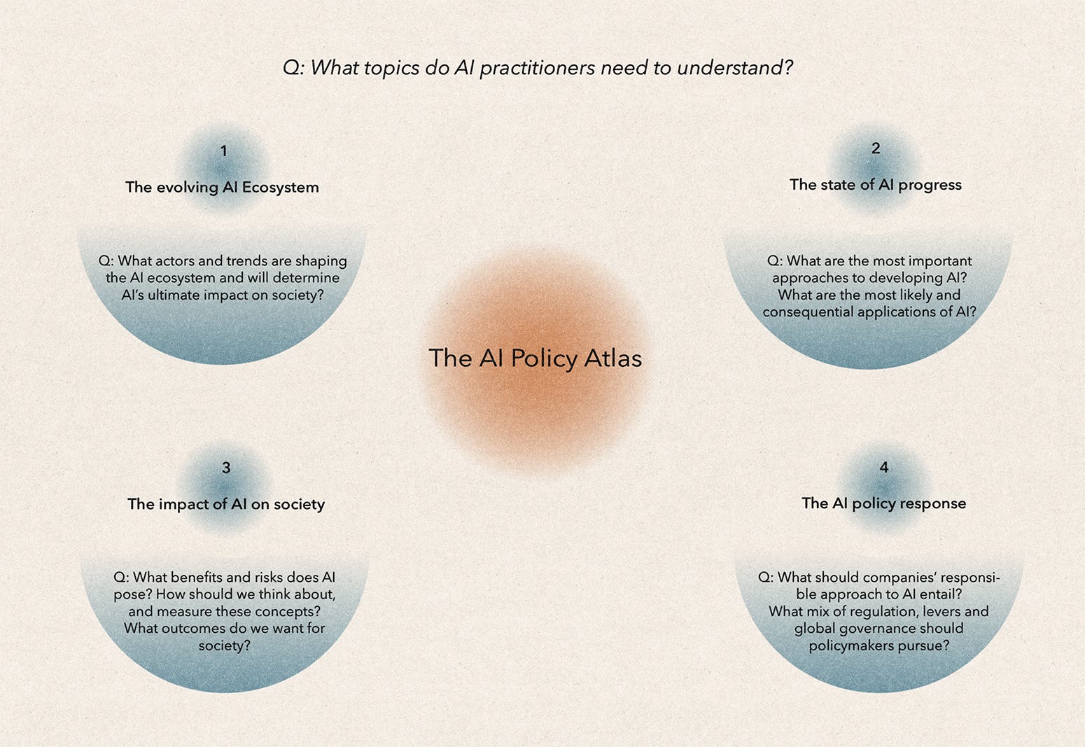 My Atlas has four categories that policy practitioners need to understand: (1) the evolving AI ecosystem; (2) the state of AI progress; (3) the (potential) impact of AI on society; and (4) the policy response.