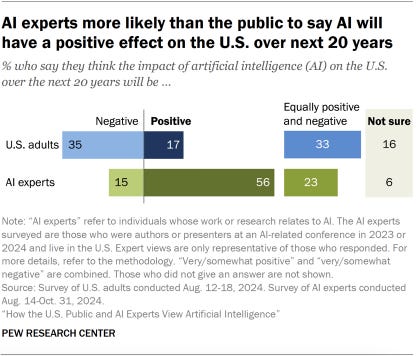 Public vs. experts: While experts tend to be more optimistic about AI than the general public, much of the public is very supportive of certain AI applications that AI ethicists worry about, such as the use of AI to detect crime or in border control.